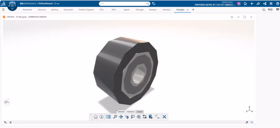 3DEXPERINECE DA 3DNAVIGATE SON GÖRÜNÜM VE TERCİH AYARLARISolidworks de hazırladığımız projeleri 3DExperience platformuna yükleme yaparak ürün yönetimini sağlarız. Dassault Systèmes'in 3DEXPERIENCE platformu, karmaşık ürün geliştirme süreçlerini yönetmek için kapsamlı bir çözüm sunar. Bu platformun sunduğu güçlü araçlardan biri olan 3DNavigate, kullanıcıların büyük ve karmaşık veri setleri içinde anlamlı bağlantılar kurmasını, keşifler yapmasını ve verilere dayalı kararlar almasını sağlayan önemli bir uygulamadır.Geleneksel veri yönetimi sistemleri genellikle hiyerarşik yapılara dayanır ve bu da farklı disiplinler arasındaki ilişkileri veya gizli bağlantıları keşfetmeyi zorlaştırabilir. 3DNavigate, bu soruna yenilikçi bir çözüm getirir. Temel olarak, veriler arasındaki ilişkileri görselleştiren ve interaktif bir şekilde keşfetmeye olanak tanıyan bir "ilişki ağı" oluşturur.3DNavigate ile montajlarımızı görüntüler ve ilişki ağlarını inceleyebiliriz. 3DNavigate de bir tab açılarak uygulama sürükle bırak ile taba eklendiğinde 3DNavigate başlangış ekranı ve boş bir sayfa bizi karşılar görmek istediğimiz ürünü sürükle bırak ile içine ekleyebilir. Ancak açtığımız son görünümü sürekli karşımıza çıkmasını istiyorsak 3DExperience tercihlerden bunun ayarını yapabiliriz.