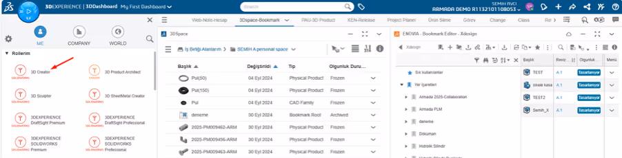 https://platform.3dexperience.3ds.com adresinden kullanıcı bilgileriyle giriş yapılır.