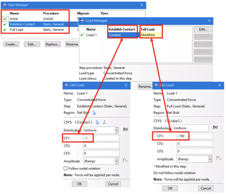 Stabilizasyonun yol açtığı hatayı azaltmanın ve temas çiftleri içeren modellerde yakınsamayı kolaylaştırmanın bir diğer yolu, yükleme adımını iki adımda (load step) uygulamaktır.