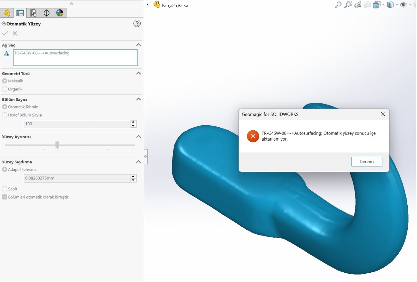 Geomagic For SOLIDWORKS ile Otomatik Yüzey Oluşturma Sorunu