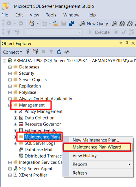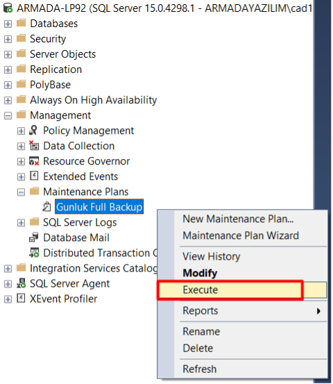 MS SQL Server’da Maintenance Plan ile Otomatik Backup Alma