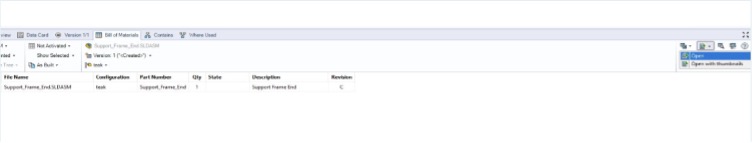 PDM 2025'te Küçük Resimlerle Malzeme Listesini Dışa Aktarma