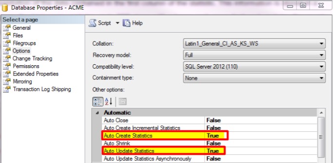 İstatistikler, sorguları optimize etmek için harikadır, ancak veri tabanı değiştiğinde İstatistikler güncelliğini yitirebilir. Sorgu performansını korumak için bu istatistiklerin düzenli olarak güncellenmesi önemlidir. SQL, İstatistikleri otomatik olarak yönetme seçenekleri sunar. Bu seçenekler Otomatik Oluşturma ve Otomatik Güncelleme' dir: