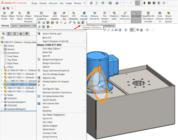 Zarf olacak bileşen işaretlenir ve fare sağ tık kullanarak bileşen özellikleri açılır.